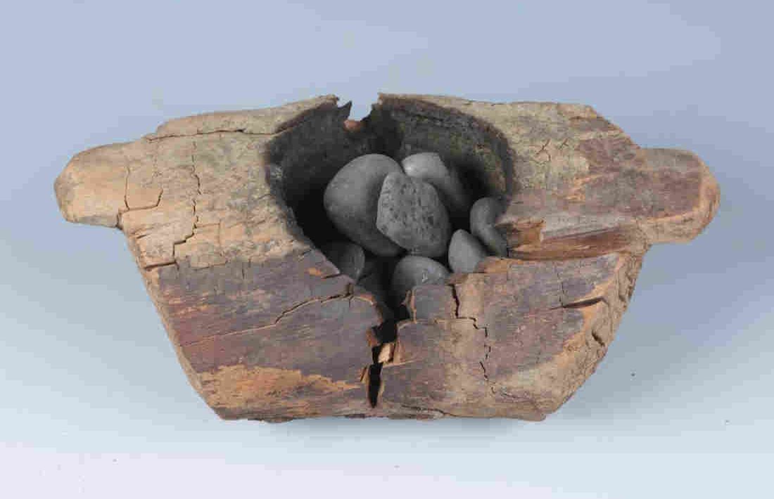 Scientists exhumed 10 wooden braziers from eight tombs at the ancient Jirzankal Cemetery in what is now western China. Many of the braziers held stones that were apparently heated and used to burn cannabis plants. Xinhua Wu/Science Advances hide caption